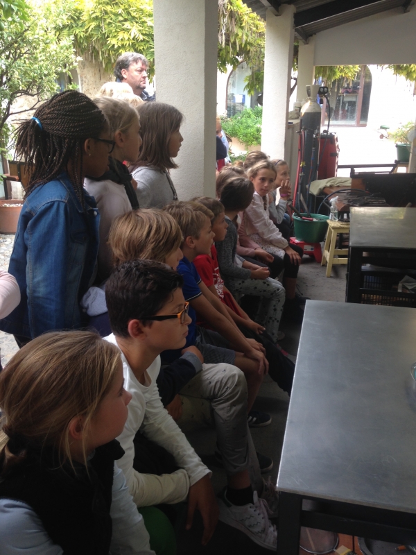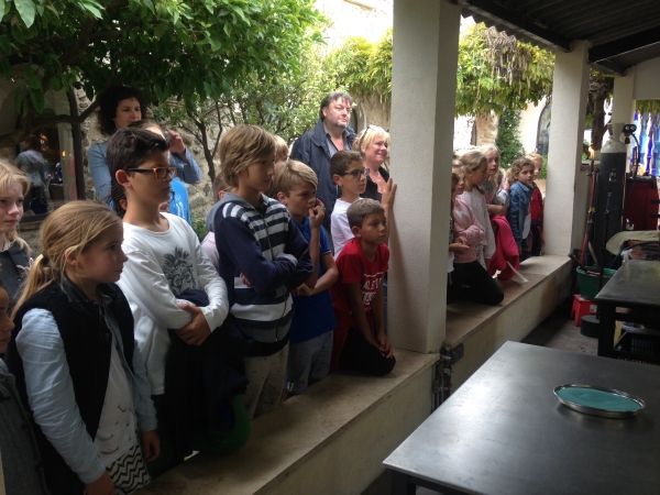 C’est ainsi que, lors de la visite à la verrerie Pierini de Biot, ce fut le dessin de Maëva « le poisson bleu » qui inspira l’artiste pour une réalisation étape par étape d’une œuvre unique sous les yeux ébahis des CM1-CM2. Ils ont eu ainsi la chance de découvrir l’art de la verrerie dans ses moindres détails.