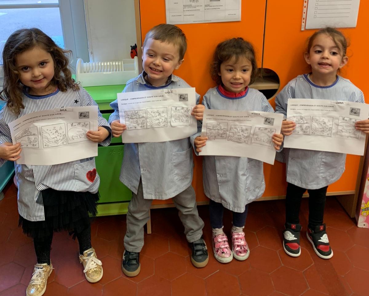 Depuis début janvier en petite section, nous travaillons sur la galette, le quadrillage, les formes géométriques et la reconnaissance des lettres de l’alphabet. Quel plaisir d’identifier et nommer les lettres de son prénom et du copain.