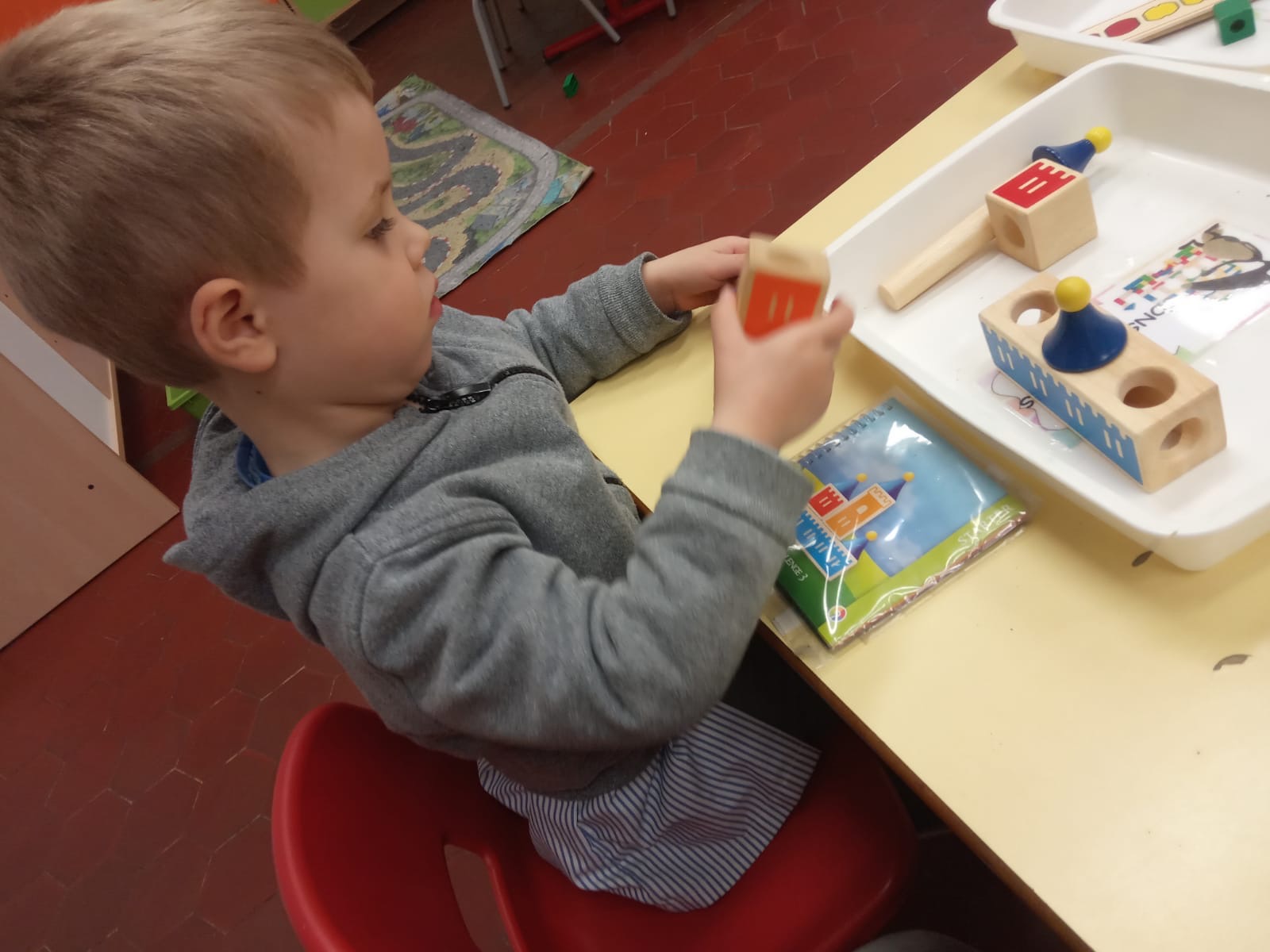 L’après-midi après la sieste, les élèves de petite section ont la possibilité de faire des ateliers individuels de manipulation (AIM) inspirés de Montessori et Freinet. Sous le regard de l’enseignante, l’élève choisit librement l’atelier et peut ainsi l’expérimenter autant de fois qu’il le souhaite. Résultat : il développe sa confiance en lui et le plaisir de réussir !